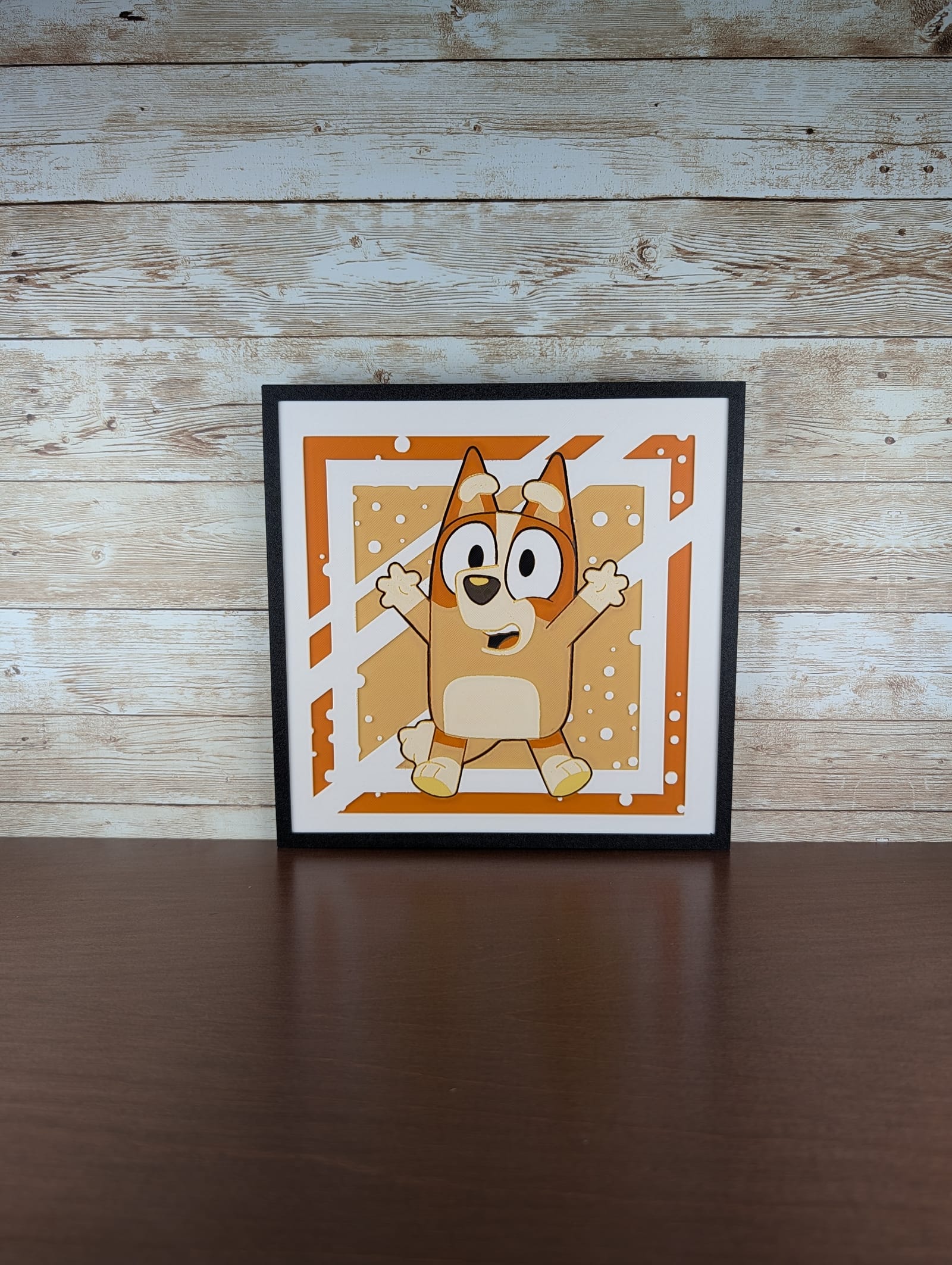 Bring the playful spirit of Bingo into any space with this delightful piece, capturing her characteristic joy and energetic charm. Perfect for brightening a child's bedroom, a playroom, or even a nostalgic fan's office, this vibrant artwork makes an exceptional gift for any occasion. The subtle filament depth of this 3D printed design adds a unique tactile dimension, making it a standout collectible that invites smiles and imaginative play. Adorn your walls with the beloved Bingo, creating a warm and inviting atmosphere for all ages.