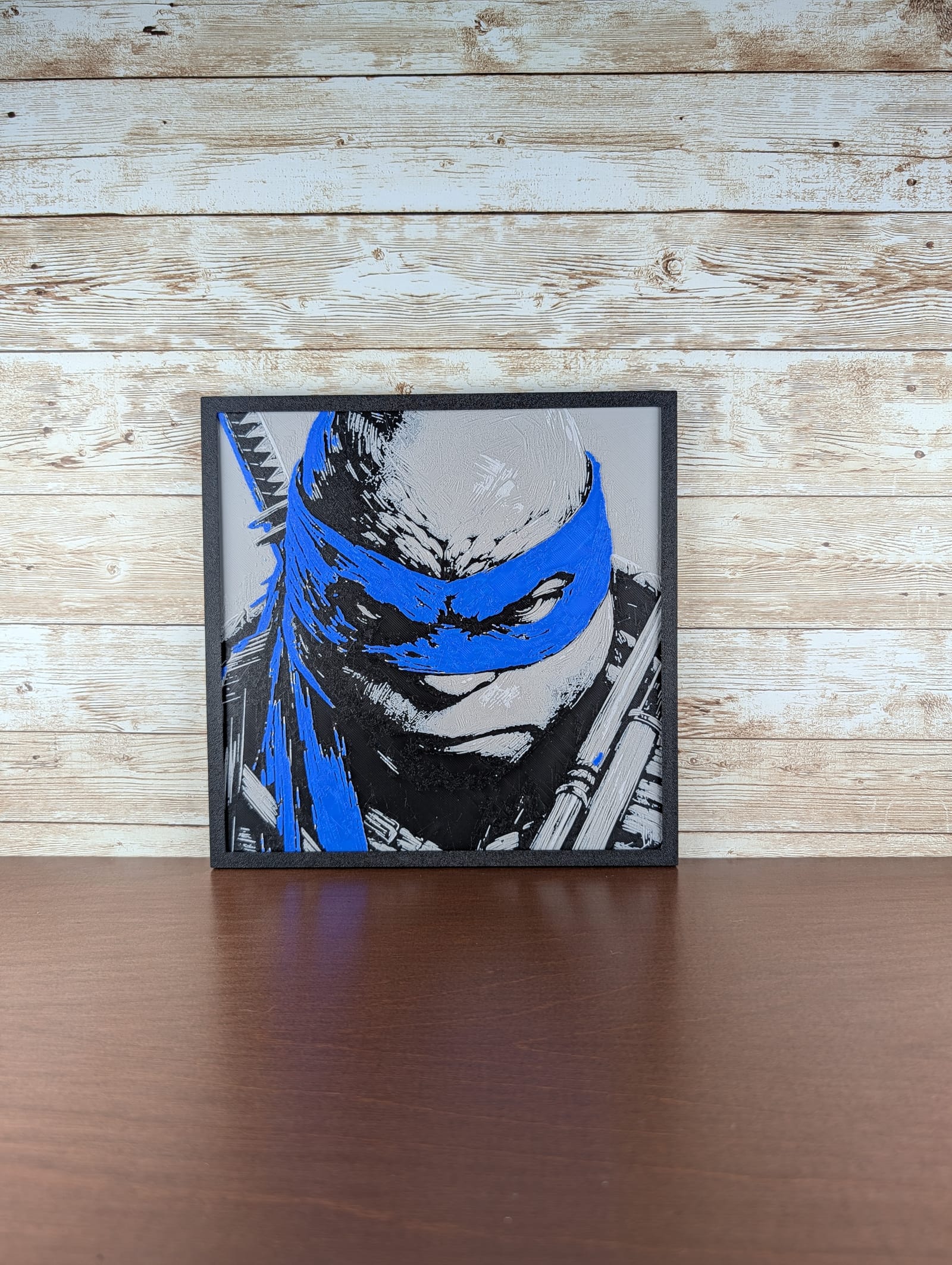 Bring the fearless leader of the Teenage Mutant Ninja Turtles, Leonardo, into your space with this captivating wall art piece. His determined gaze and iconic blue bandana make a bold statement, reflecting his unwavering dedication and skill. Perfect for any TMNT enthusiast, comic book fan, or collector seeking a unique piece of fan decor, this striking portrayal, with its subtle filament depth inherent to its 3D printed creation, adds a dynamic texture that truly brings the hero in a half-shell to life. It's an ideal gift that adds a powerful touch to any game room, bedroom, or office, celebrating a beloved pop culture icon.