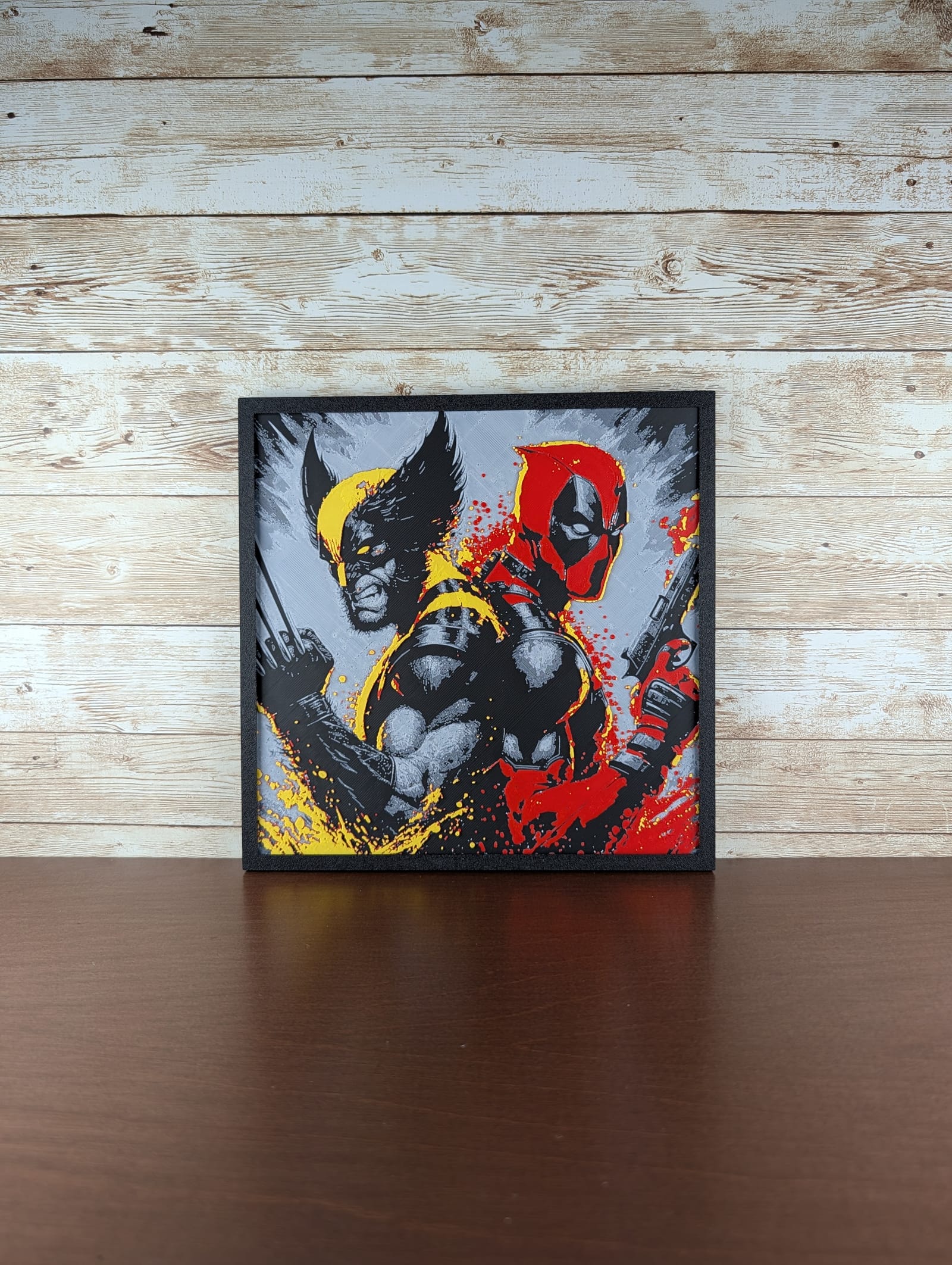 Witness the intense dynamic between two of Marvel's most iconic anti-heroes, Wolverine and Deadpool, in a striking portrayal that captures their raw energy. This vibrant depiction, showcasing subtle filament depth, brings their gritty personalities to life with a unique visual flair that instantly demands attention. It's an exceptional collectible and a perfect gift for any dedicated comic book fan looking to elevate their space. Ideal as a captivating room accent or a bold statement piece for a game room, office, or personal sanctuary.